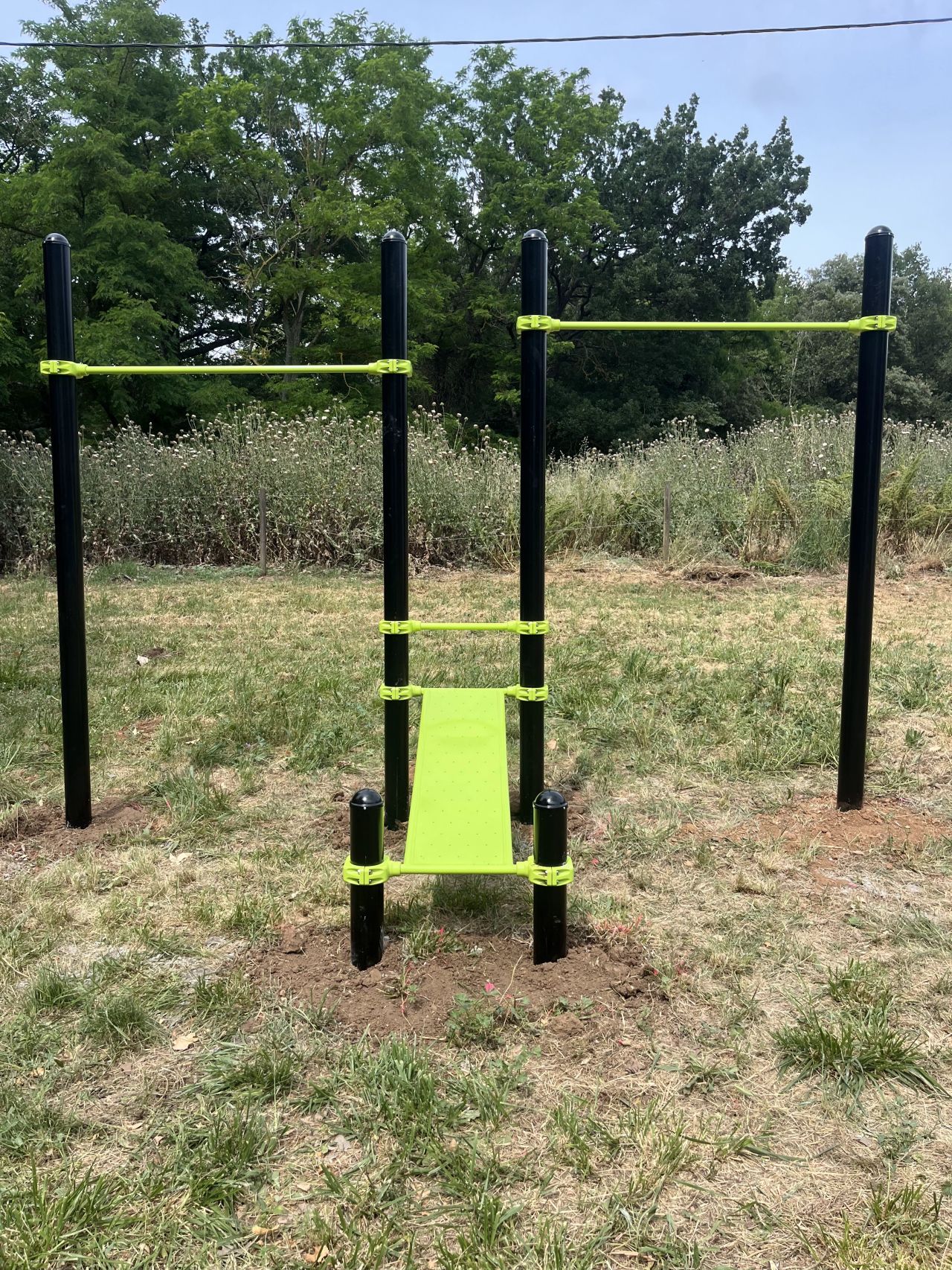 Due barre da 1500 mm e una panca inclinata per addominali costituiscono questo classico streetworkout.